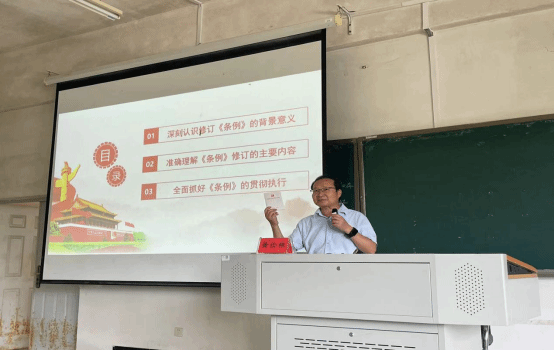 黄俭根副校长强调,我们要深刻认识新修订的《条例》的背景意义,要坚持靶向施治,充实违纪情形,对“四风”问题紧盯不放,寸步不让;坚持问题导向,织密制度笼子,始终保持党同人民的血肉关系;坚持系统整治,全域治理提升,将处分对象不限定为党员领导干部,拓展到全体党员,体现出执纪必严、违纪必究的决心。同时,黄俭根副校长希望全体师生能准确把握《条例》修订的主要内容,做到全面研读一遍《条例》,比较先前内容清楚明白新增、修改的内容。黄俭根副校长对《条例》中政治纪律、组织纪律、廉洁纪律、群众纪律、工作纪律、生活纪律六个方面进行了全面细致的解读。