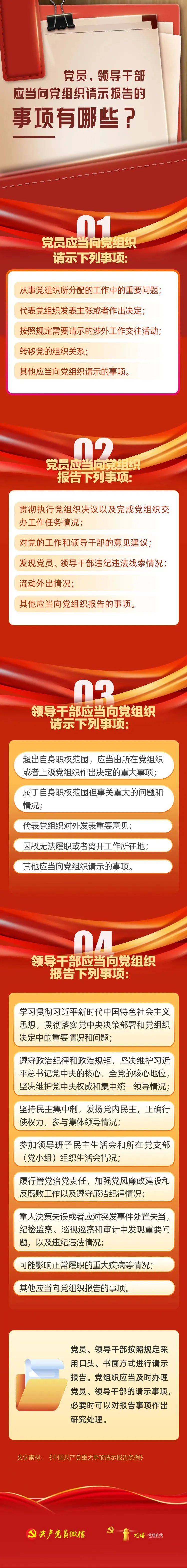 党员、领导干部应当向党组织请示报告的事项有哪些?