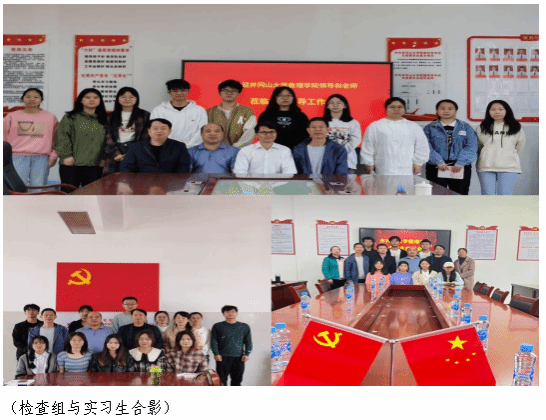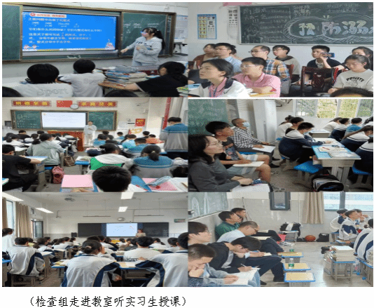 2023年4月23日—5月12日期间,数理学院王新长院长、习军明书记、周身林副院长等院领导分别带队,到学院2020级师范类专业在吉安市区、永丰县、安福县等教育实习基地进行了检查。实习检查内容包括了解实习生生活、教学、班主任工作情况及日常表现,检查实习生实习手册、实习组长工作手册和带教老师工作手册完成情况。检查组到各实习学校听1-2节课,详细记录检查情况;通过座谈形式与实习生交流,帮助实习生解决实际问题,同时与实习学校积极交流、互动,促进与实习基地建设和发展。