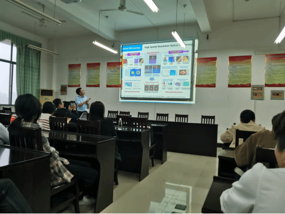 江涛教授融合科学研究和学生管理两个维度,借用“齐家、治国、平天下”视角阐述“志”的本质,达到“修身”目标。学术报告结合江教授研究过程的一些具体实例,如远场和近场的耦合研究、多功能高分率光谱设备设计及实现搭建等,分享了自己追光之旅的奋斗历程和丰富经验。交流互动环节,江教授回应了每位师生的学术、求学或生活等方面问题,并勉励大学生要“格物致知、诚意正心”,不断提升自身水平。报告会集科学研究、为人做事和思政教育为一体,获得了在场师生阵阵掌声。