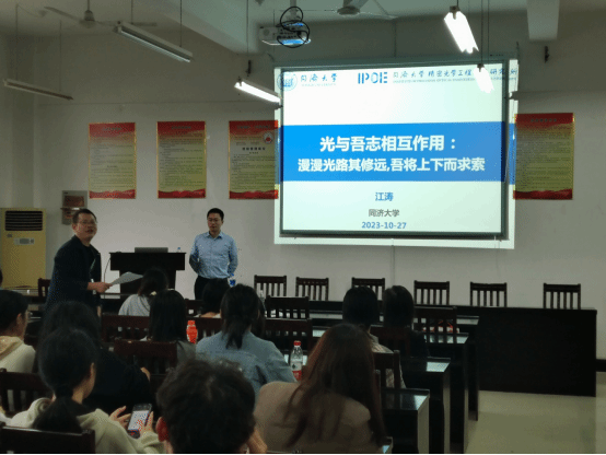 在井冈山大学建校65周年之际,10月27日下午,同济大学精密光学工程技术研究所江涛教授应邀莅临数理学院作题为“光与吾志相互作用”的学术报告。报告会由副院长孙心瑗教授主持。学院领导、物理系师生代表共60余人参加了学术报告会。