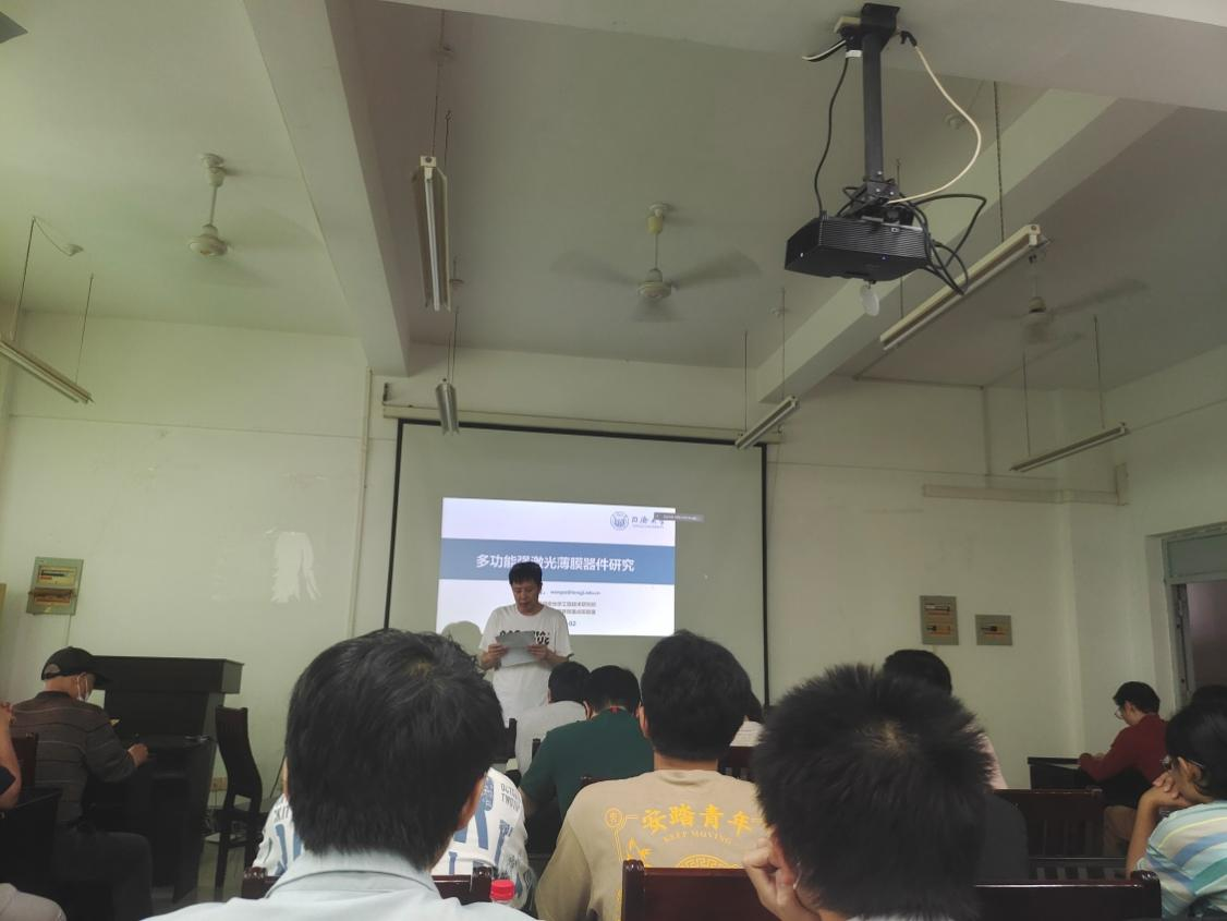 强激光是前沿科技和新兴产业的制高点之一,薄膜器件是强激光装置的核心,薄膜器件能承受的最大激光强度就是它的损伤阈值。损伤阈值低,薄膜就容易损伤。在报告中,王占山教授从高损伤阈值薄膜的加工原理、制备方法、检测手段、科学内涵和成果转化等角度详细介绍了同济大学在高阈值激光薄膜领域的近二十年的研究成果。王教授团队创新性地引入性质单一且结构可调控的人工缺陷,突破了激光与薄膜相互作用难于定量研究的瓶颈,揭示了真实薄膜的激光损伤物理机制;提出了抑制电场增强的“场控”激光薄膜设计新方法,创制了阻止环境吸附的新材料;发明了去除损伤“局域强点”的全流程定量化制作技术,最终实现了激光薄膜器件损伤阈值的大幅提升、环境适应性的显著增强和制作批量一致性的稳步提高。整场报告物理知识深入浅出,信息量巨大,开拓了师生视野,获得了全场师生阵阵掌声。