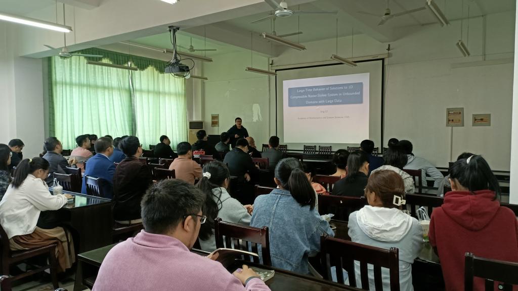 应我校邀请,11月2日上午,中科院数学与系统科学研究院&南昌大学李竞教授到数理学院在10A302作了题为《Large-Time Behavior of Solution to D Compressible Navier-Stokes System in Unbounded Domains with Large Data 》的学术报告。学院没课的博士教师及部分学生聆听了此次报告。