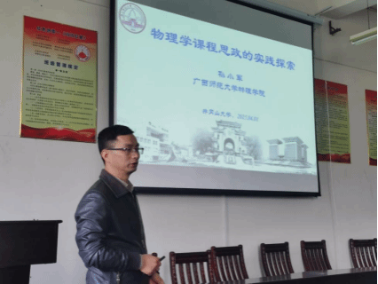 为深化课程思政教学改革,4月1日,数理学院邀请广西师范大学博士生导师孙小军教授在10A302会议室作《物理学课程思政的实践探索》专题讲座。数理学院物理系近百名师生参与学习。