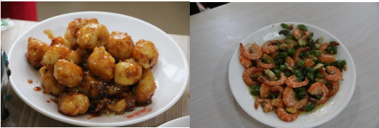 比赛前,主持人组织学生提前准备好材料与食材并向参赛学生介绍比赛规则,要求参赛选手在15分钟内完成自主创意菜品并交给评委品尝,同时向评委介绍菜品的寓意以及背后的故事。我院两组参赛学生信心满满地展现他们的厨艺、从容不迫地完成着每一步骤,两道菜品为油焖大虾和拔丝香蕉,极具地方特色。在向评委介绍时,主厨罗中毅讲到虾是人们最喜爱吃的美食之一,也有着极高的营养价值。而另一组主厨嵇祥蕊则介绍说拔丝香蕉是北方人的惯用吃法,她想用这道菜让大家感受一下北方人的美食特色。精致的菜品、怡人的菜香与美妙的味道都为评委及现场人员所赞不绝口。最后嵇祥蕊、沈佳欣所组成的小组荣获三等奖。