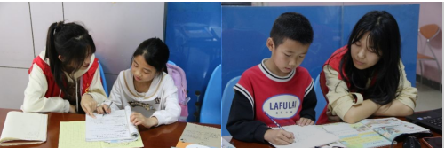 在社区图书室,刘馨怿和姚梦玲同学带领社区的儿童开展课业辅导活动,了解他们在学习上的困难之处,并耐心的帮助他们解答。当问到老师讲解的好不好时,参加辅导的一位小女孩竖着大拇子笑着大声喊到:very good!“我们家小孩在家这些作业都不会做,我们又不懂,这个志愿者讲的很好,小孩子一下就会了,我在旁边也感受到了这个志愿者非常认真负责,谢谢!”一位带孩子来参加活动的家长如是说。