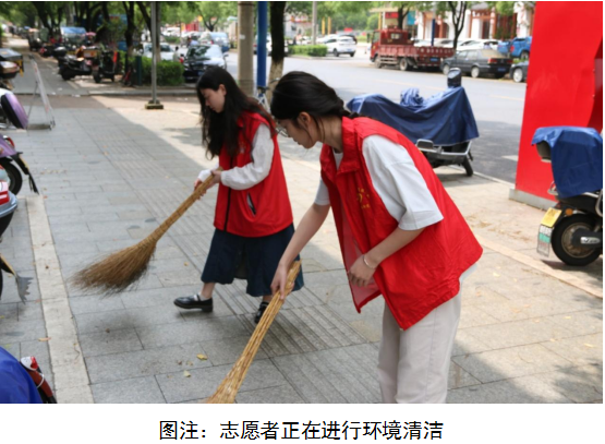 另一部分志愿者在社区开展了环境卫生清洁活动。近期吉安市风雨交加,路面上枯枝落叶散落,不少垃圾被大风吹到了街道两旁的绿化带当中,为了保持社区卫生整洁有序,减轻环卫工人工作量,志愿者们拿着扫把和夹子投入到街道卫生清洁当中,清扫街边落叶和清理花圃垃圾。大家充满激情,红色的志愿者马甲在阳光的照耀下更加鲜艳。