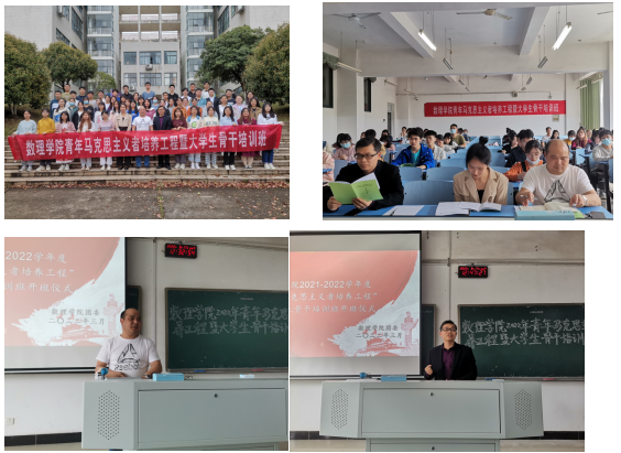 为加强青年大学生骨干的政治理论学习,引导骨干深刻领悟“两个确立”的决定性意义、增强“四个意识”、坚定“四个自信”、做到“两个维护”,培养成有志气、有骨气、有底气的青年马克思主义者,成长为堪当民族复兴重任的时代新人 ,数理学院于 3月17日中午在10A015举行了2021-2022学年度“青年马克思主义培养工程”暨大学生骨干培训开班式。数理学院党委书记习军明、团委书记曾建龙、团委老师康智佳出席开班式, 学院“青马班”55名学员参加开班式。