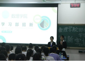 9月9日晚,数理学院团委学生会于11A203、11B208教室举行第十七届团委学生会招新宣讲会,团委学生科徐亮和徐俊老师、主席团成员、各部门负责人及2023级全体新生参加本次宣讲会。