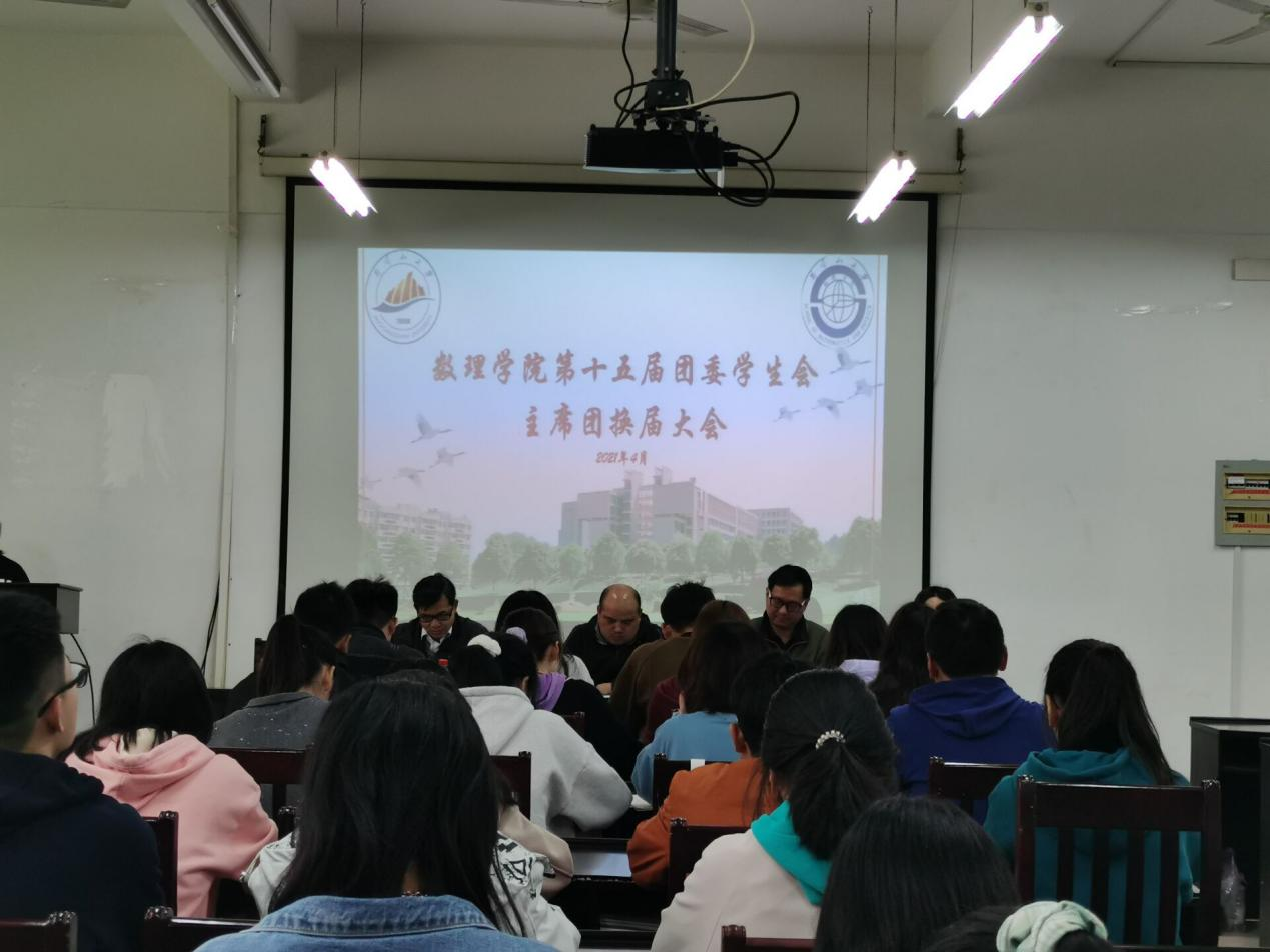 2021年4月7日中午12:30,数理学院团委学生会主席团换届会在10A302举行。学院党委书记习军明出席换届会并讲话,党委副书记宋耀东、团委书记曾建龙、团委学生科宗文娟和尹秋莲以及团委学生会全体成员参加会议。
