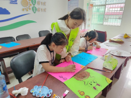活动中,志愿者们还与小朋友开展了歌唱和画画教学活动。在志愿者的细心教导下,小朋友们学会了手势舞《国家》,一起合唱了《国歌》和《歌唱祖国》,并且自己动手画出了“月兔抱月饼”的美丽图画,表达了小朋友们过中秋节和国庆节的快乐和喜悦。