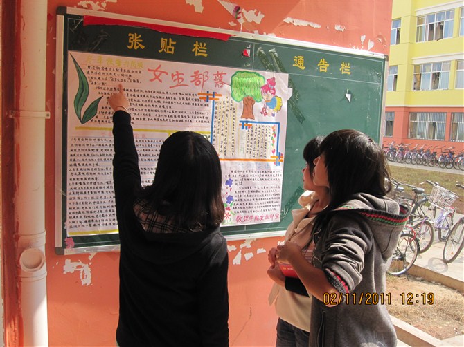 我院团委女生部于十月出一份特色“女生部落”手绘海报,在十一月一号张贴于36栋女生宿舍楼下,海报主要由女生部的成员完成,主题旨在“关爱女性”。