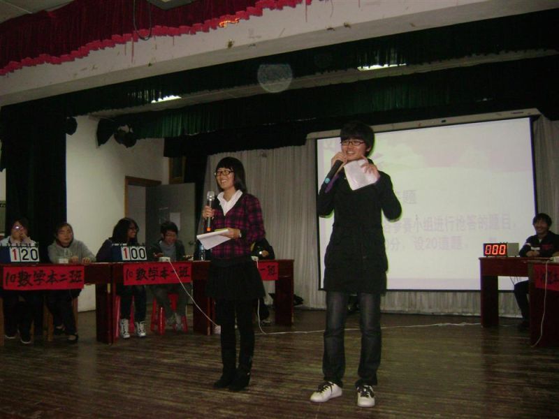 竞赛题目侧重知识性、安全性的同时也注重与学生们日常生活的联系。参加此次竞赛的五个队在赛前做好了充分的准备。他们以饱满的热情抢答形式多样的题目。比赛现场更是气氛活跃,高潮迭起,扣人心弦。经过激烈的角逐,10级数教专(1)班代表队胜出。