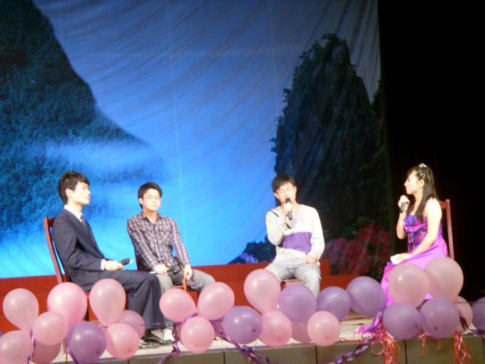 在接下来的《毕业生访谈》节目中,我院两位优秀毕业生罗森平、陈金望与现场各位分享了他们的大学生活,并对在场的学弟学妹提出了殷切的希望、送上了真诚的祝福。接下来的双簧《海燕》表演得栩栩如生,赢得了观众的阵阵掌声。小品《功夫》、《应聘》。歌曲《少年》、《再不要做情郎》,舞蹈《2 Different Tears》、《青花瓷》等精彩纷呈的出现在此次晚会上,晚会在舞蹈《LOVE LOVE LOVE》中完美落幕!