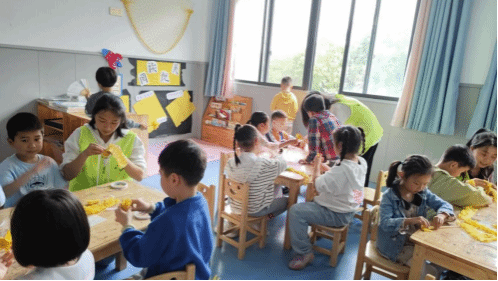 志愿者带领孩子们制作了青团画、菊花等艺术作品。孩子们积极参与,都希望做出优秀的作品来获得哥哥姐姐的奖励。通过积极参与和充满趣味的手工制作,孩子们学到了许多关于清明节的传统文化知识,了解到了更多与清明节有关的事物。手工活动结束后,志愿者给孩子们分发了活动奖品,并讲述了许多红色故事,鼓励他们要不忘缅怀先烈,好好学习,快乐成长。