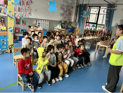 志愿者以课堂交流的形式向孩子们科普清明习俗,教他们认识菊花、青团等象征着清明的事物,一起合唱儿歌《我爱北京天安门》缅怀先烈。交流过程中,孩子们积极参与并大胆举手回答问题,孩童的天真懵懂为课堂增添了许多趣味。