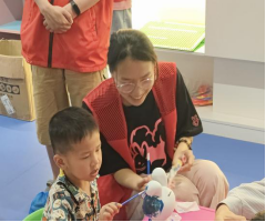 初次见面,志愿者和蔼可亲的面孔让康复中心的儿童感受到了温暖,亲密的互动更加拉近了彼此之间的距离。在绘制石膏娃娃的过程中,志愿者耐心指导