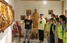 在《东固传统造像》第二十代传人刘节明老师的带领下,实践团成员和小学生参观了东固传统造像展示馆中近百件木雕工艺精品。波澜壮阔的江山画卷、栩栩如生的自然生灵、神形兼备的人物群像,彰显着非遗文化的独特魅力,闪耀着工匠精神的璀璨光彩。