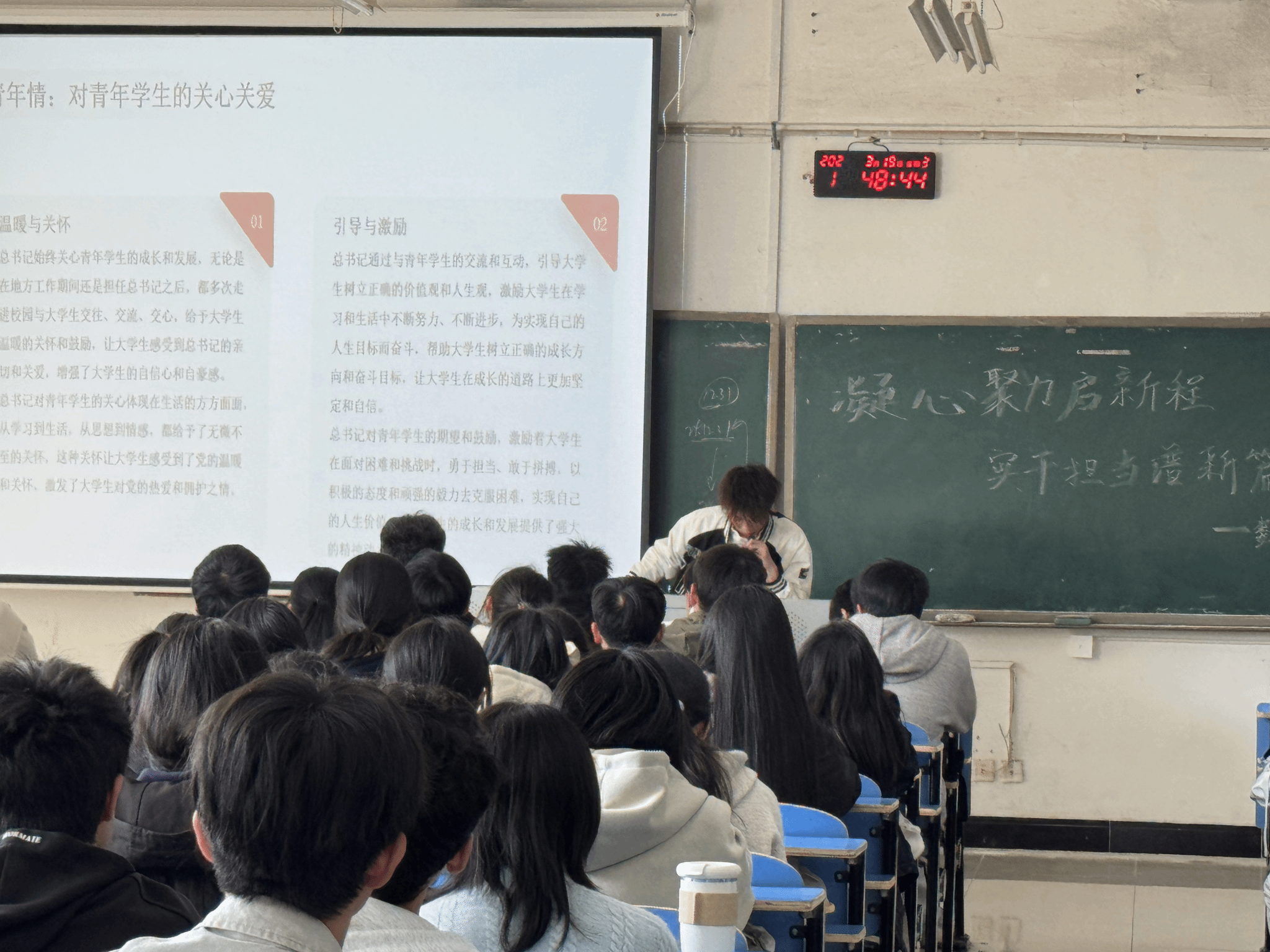 活动在庄严的国歌声中拉开帷幕。通过观看时政视频、研读政策文件,同学们深入领会习近平总书记对青年的寄语,感悟青春使命。大家围绕科技创新、教育强国等话题热烈讨论。随后,主持人分享了线上学习平台和丰富的实践活动,从加强社会实践锻炼到强化团队协作精神,鼓励大家理论联系实际,敢想敢干。