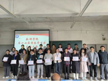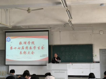 为表扬先进、树立典型,3月7日中午,数理学院于10A006教室召开第十七届团委学生会表彰大会,数理学院党委书记习军明、党委副书记涂凰、团委指导老师康智佳、兼职团委书记刘波、团委学生科徐亮、左子珍、徐俊老师出席本次大会,第十七届团委学生会全体成员参加大会。会议由康智佳主持。