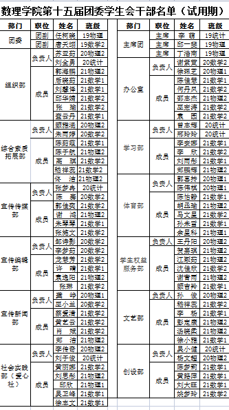 数理学院第十五届团委学生会干部名单(试用期)