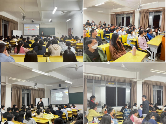 讲座上,乔豪豪学长向同学们分享了自己的创业经历,阐明了创业的定义和大学生的定位,强调了情商和学习素养在创业过程中的重要性,并结合自身的创业经历给同学们提出了三点建议:一是要时刻保持谦虚的态度,不骄不躁;二是要坚持学习,努力提升自己的学习素养;三是要不断学习,主动学习更新鲜的事物。随后,乔豪豪老师通过对近三年教师资格证报考人数和通过率的数据分析,说明师范生考取教师资格证的有利条件和重要性;同时就考试科目和知识点分布情况如何准备考试进行详细介绍。此外,乔豪豪老师与同学们进行现场互动,就相关问题进行模拟教资面试,让同学们对教师资格证的考试内容有了进一步的了解,并如何应对课堂突发情况以及完善自我。