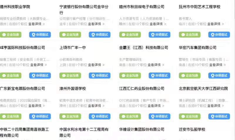 1.江西省2022届高校毕业生“职教师范”类专场招聘会暨江西科技师范大学2022届毕业生秋季视频双选会http://hr.bysjy.com.cn/kzp_video_jobfair/video_jobfair_detail_v1?video_jobfair_id=2212&type=1