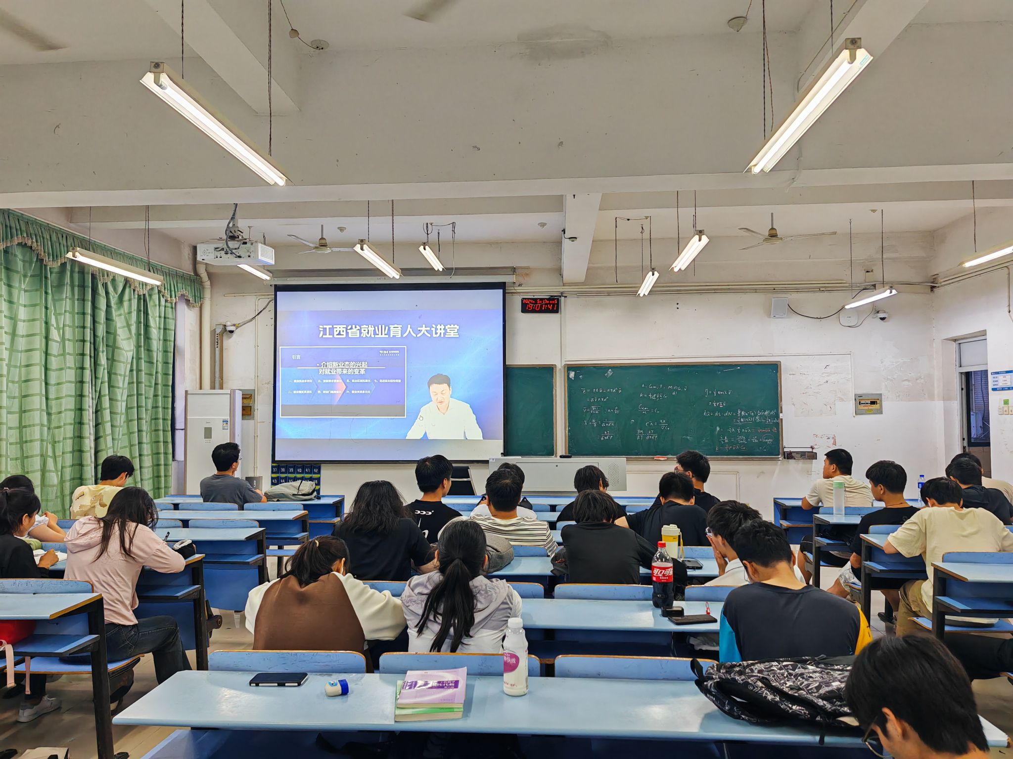 5月17日晚,数理学院组织学生在10栋B103集中观看第二十三期江西省就业育人大讲堂。