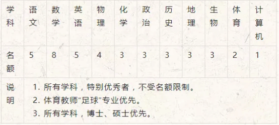 (4)外语教师:同等条件下,英语学科专业八级、或有“雅思”“托福”培训经历者优先。