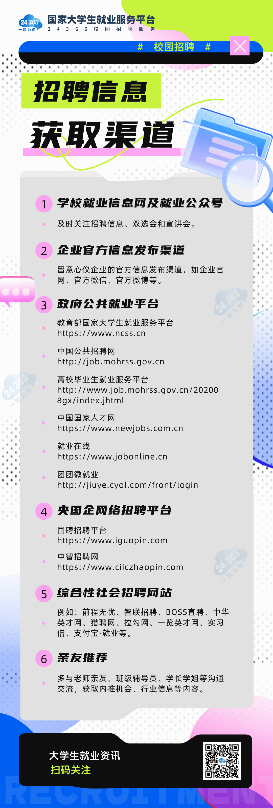 多渠道、全方位信息收集招聘信息。同学们可以利用学校就业指导中心、招聘网站、社交媒体、行业论坛等多种渠道收集招聘信息。并关注目标企业的官方账号和招聘动态,及时获取第一手信息。