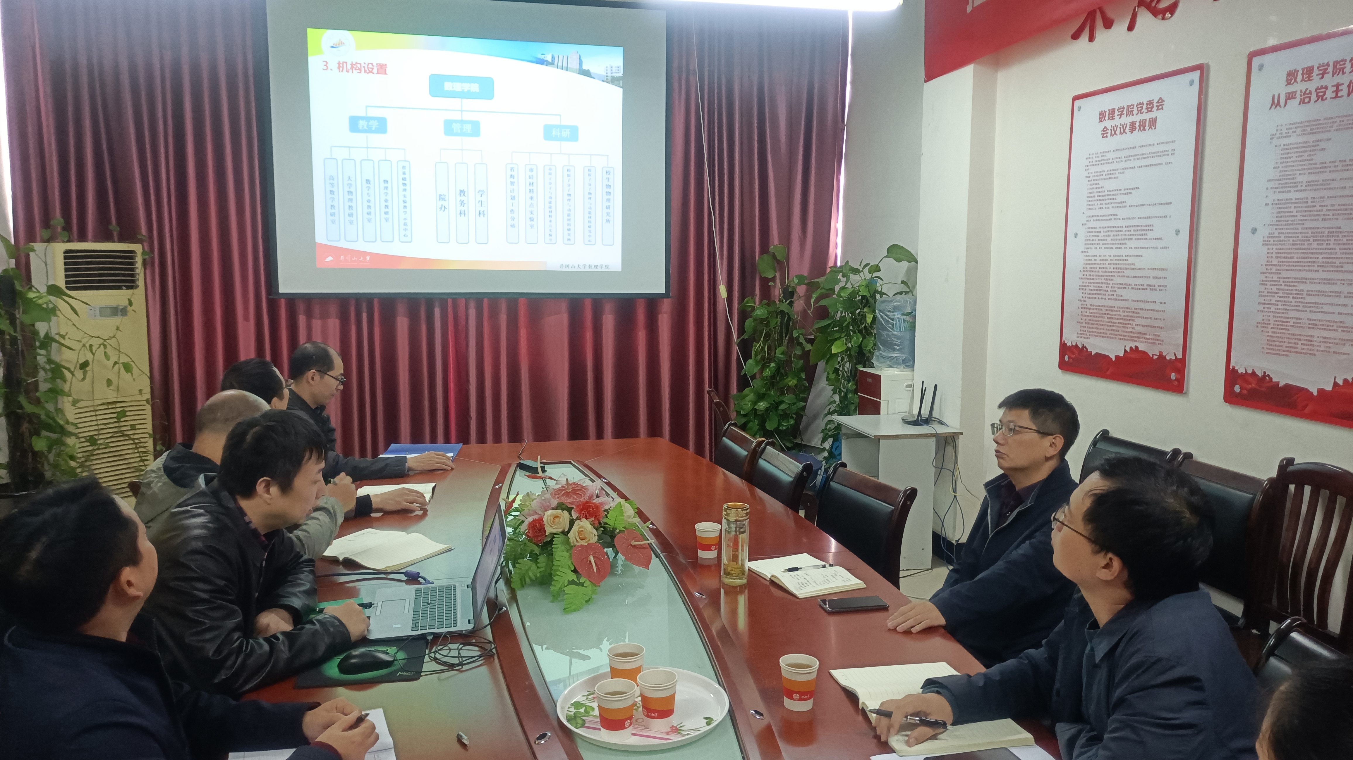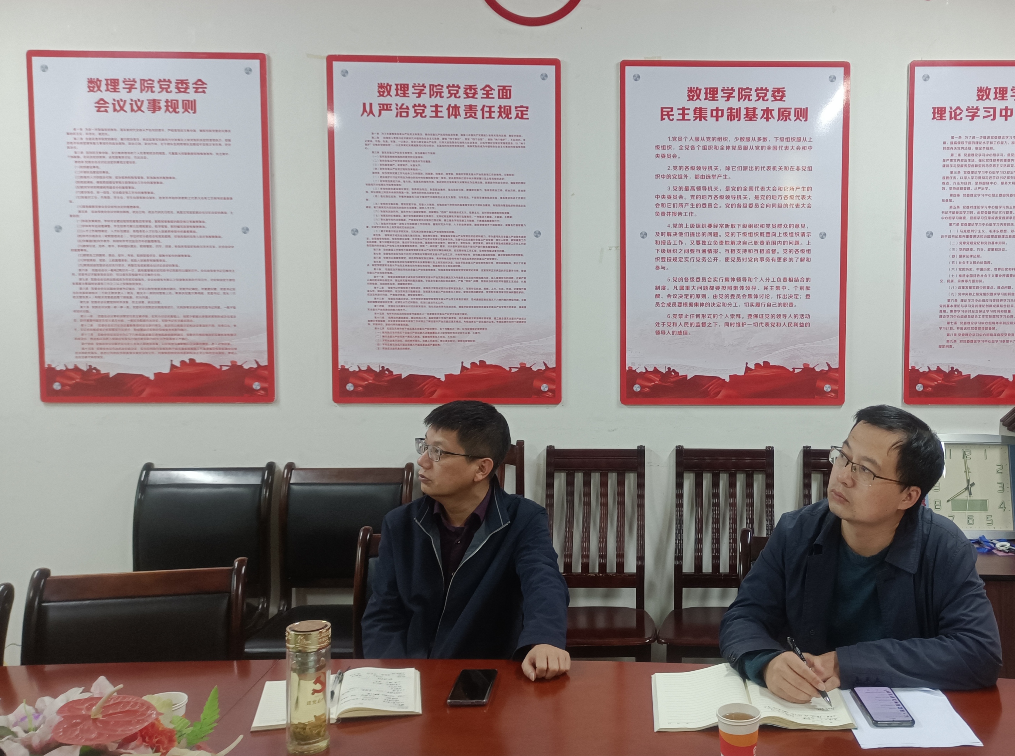 王新长院长代表学院向罗校长进行工作汇报,介绍了学院的基本情况、亮点特色、存在问题及工作打算。其他领导班子成员分别就各自分管的工作和存在的问题向罗校长进行汇报,希望学校能够在基础学科学院主要存在的绩效考核、人才引进政策、硕士点扩点等问题给予更多的政策倾斜和指导!