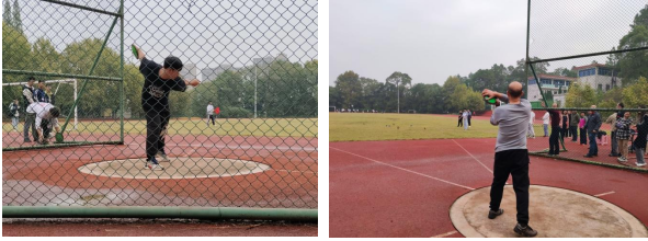 10月27日上午9:30,男子铁饼决赛在南区田径场举行,我院夏秀文老师获得第二名、学生何伟荣获男子铁饼第七名。手中紧握那沉重的铁饼,奋力一掷,在空中划过一条优美的弧线,掷地有声的落在满意的位置。