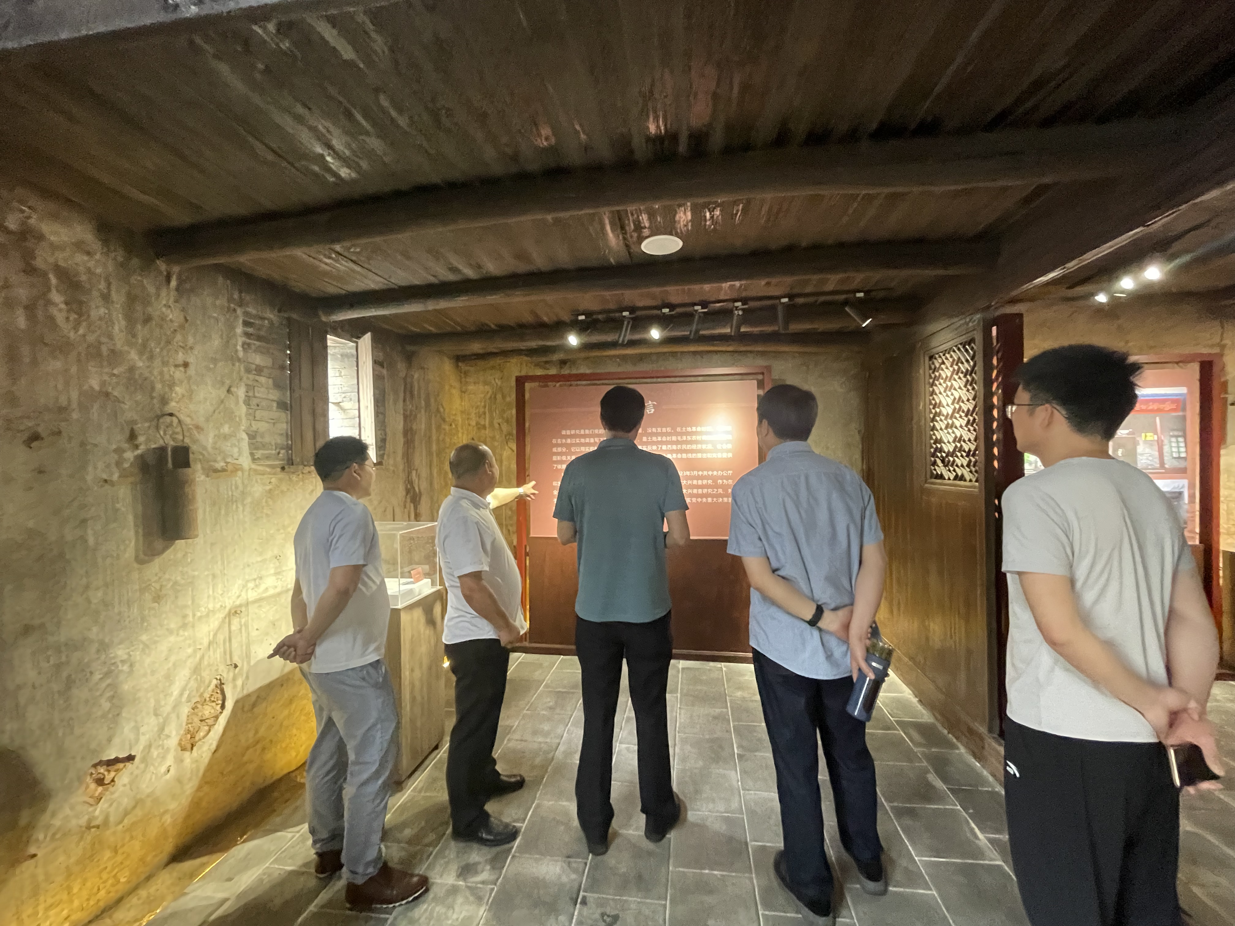 学习组在东塘村支书王书记及解说员的陪同下,来到毛泽东同志东塘调查旧址参观毛泽东东塘调查陈列馆,聆听毛主席在东塘的调查研究讲解,现场学习东塘调查唯实求真精神。一幅幅照片、一件件文物和一处处注解,详细记载毛泽东同志在东塘作调查研究的背景、过程和方法。大家认真听取讲解、驻足细看,深刻感悟我们党开展调查研究的优良作风和实事求是的思想路线。