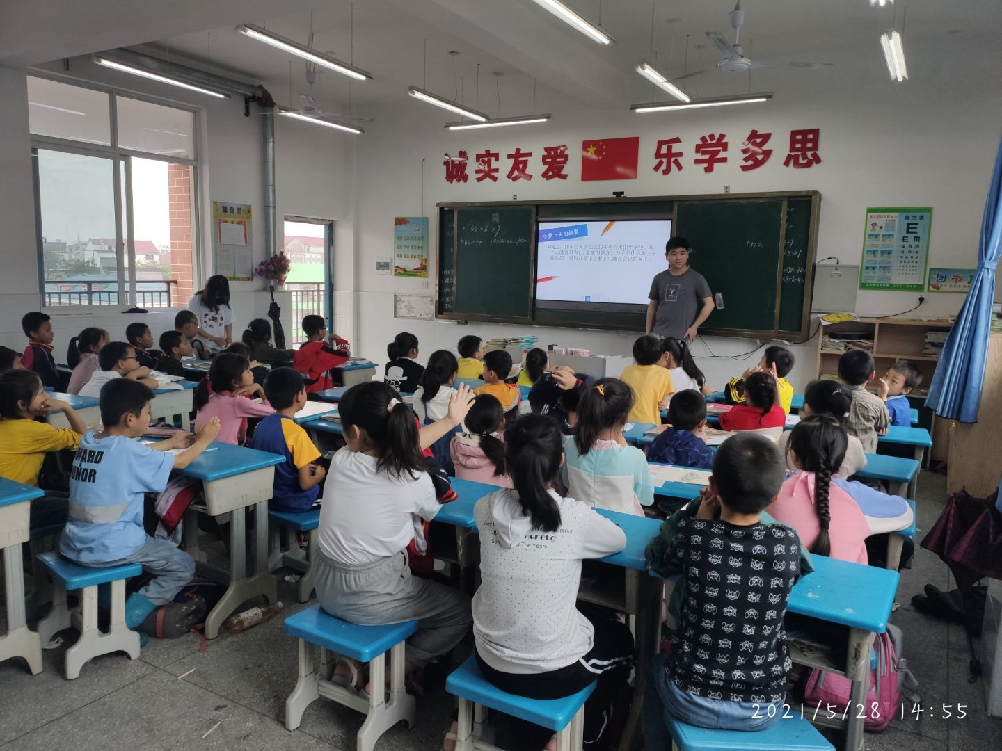 5月28日,由井冈山大学数理学院大学生组成的宣讲团走进吉安市青原区天玉小学,开展“党史学习进校园,红色精神代代传”主题教育活动。15名宣讲团成员分组到6个班级给孩子们做红色精神宣讲,同时发放问卷调查表和心愿卡,了解孩子们的学习、理想和心理情况,做相关学习和心理健康辅导。