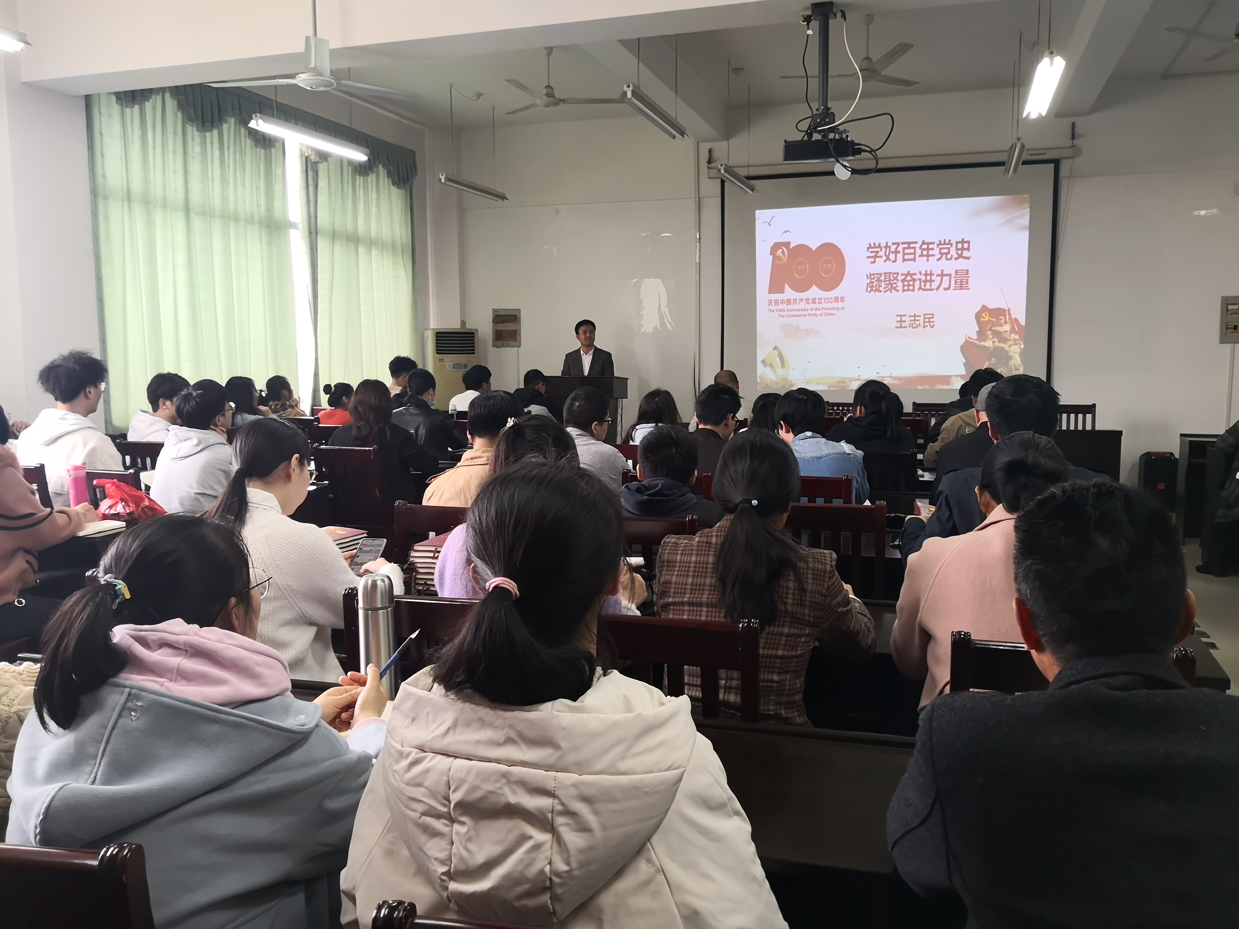 4月15日下午,数理学院党委举行党史学习教育宣讲会。党史学习教育校党委宣讲团成员、继续教育与培训学院副院长王志民以《学好百年党史,凝聚奋进力量》为题,为数理学院师生党员上了一堂深刻和生动的党史学习教育课。