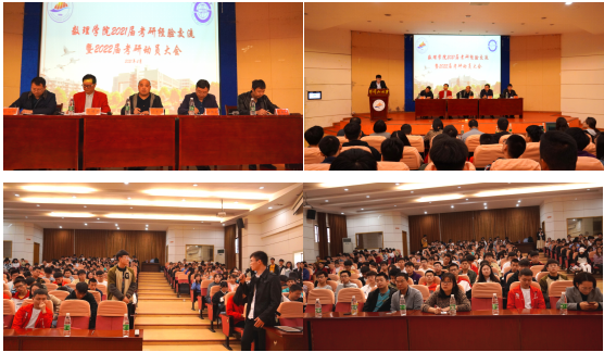 为了进一步提高数理学院学生考研热情,明确考研目标,了解更多的考研信息,数理学院于4月17日上午在10栋数理大楼报告厅举行2021届考研经验交流暨2022届考研动员会。学院领导班子全体成员、团委学生科全体成员、2018级班主任、2018级全体学生、2019级和2020级有意向考研同学及7位2021届考研研究生代表参加会议。