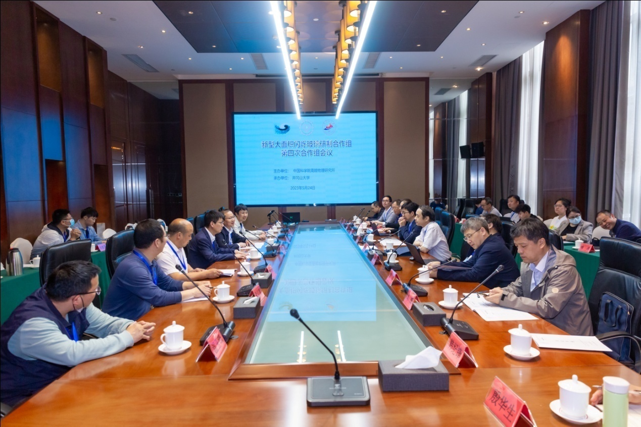 新型大面积闪烁玻璃研制合作组(简称:闪烁玻璃合作组)是为满足粒子物理实验和核探测领域对新型闪烁玻璃需求,由中国科学院高能物理研究所牵头,国内高校、研究所和企业联合成立的产学研合作组。该合作组以高能物理学家提议的大型对撞机对闪烁玻璃的需求为基础,开展新型闪烁玻璃的研制,包括玻璃配方优化、性能标准制定、批量制备生产及应用技术开发等。合作组成立两年来,各合作单位参与人员,在相互配合和联合攻关下,分别解决了玻璃配方、制备工艺、测试方案等具体的技术问题,取得了阶段性成果。