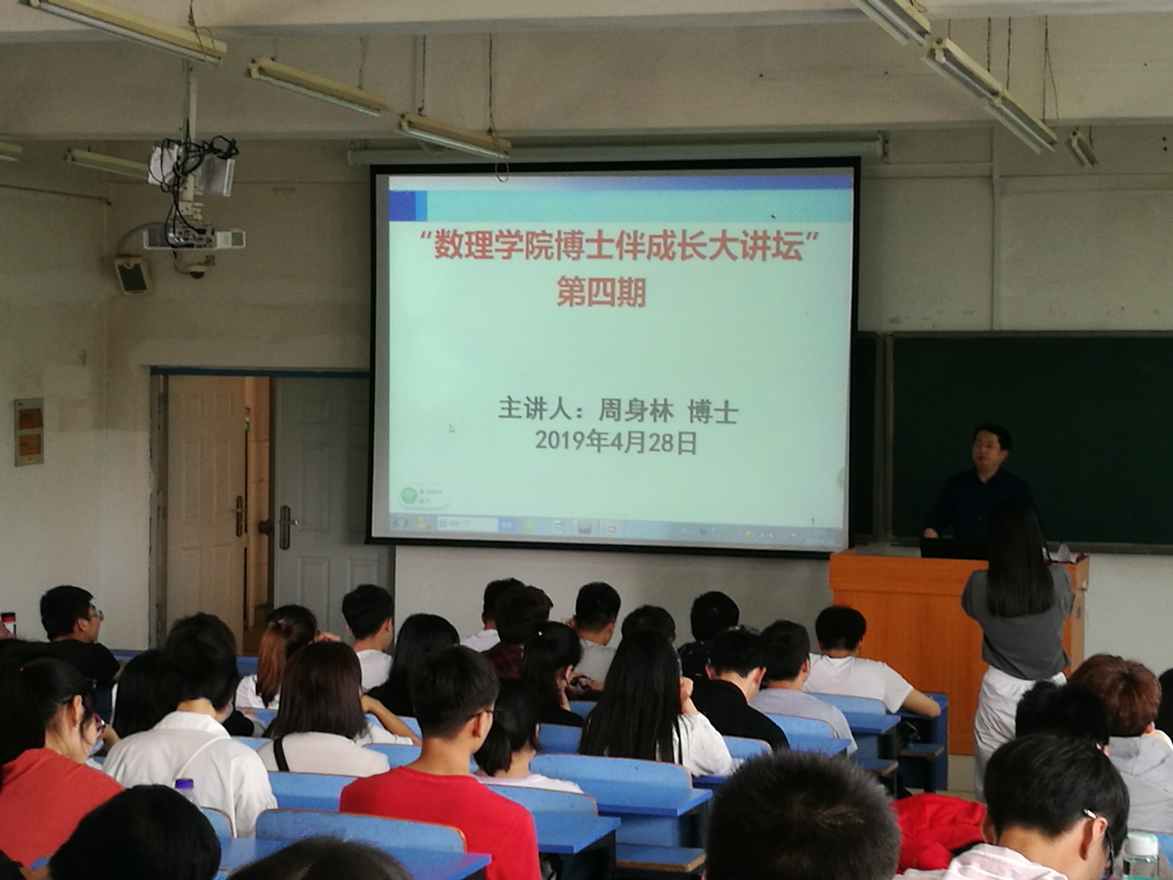 为深入贯彻落实全国高校思想政治工作会议精神,坚持以服务大学生成长成才为主要目标,加强和改进我院大学生思想政治教育工作,帮助大学生树立正确的“三观”,引领健康向上的学术风气,数理学院积极打造的党建思政工作特色品牌活动之——“博士伴成长大讲坛”。大讲坛第四期报告活动于4月28日下午2:30在十栋教学楼A010室成功举办。学院部分领导及师生代表共计100余人聆听了报告。