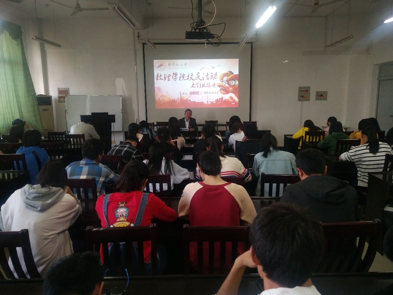 六十载春华秋实,一甲子桃李天下!金秋十月,我们迎来了井冈山大学建校60周年华诞。值此喜庆时刻,10月28日下午,数理学院特邀广州校友会会长伍文澜前来作创业报告。报告会由党委书记王剑主持,学院班子成员及师生代表80余人参加了报告会。