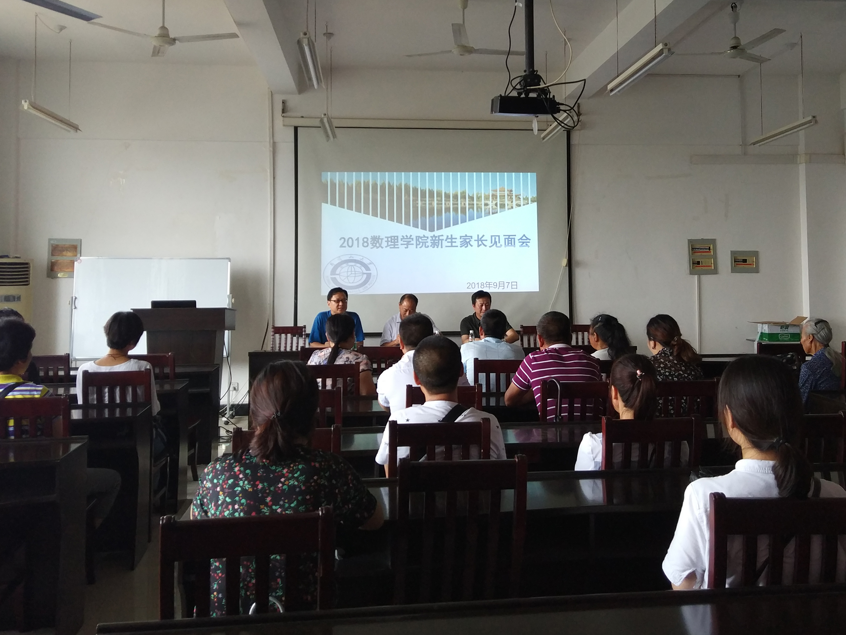 9月7日下午15:00,学院在十栋A302室举行了2018级新生家长见面会。学院党委书记王剑、院长余晓光、党委副书记宋耀东及全体新生班级班主任与新生家长进行了热烈的交流。会议由宋耀东副书记主持。