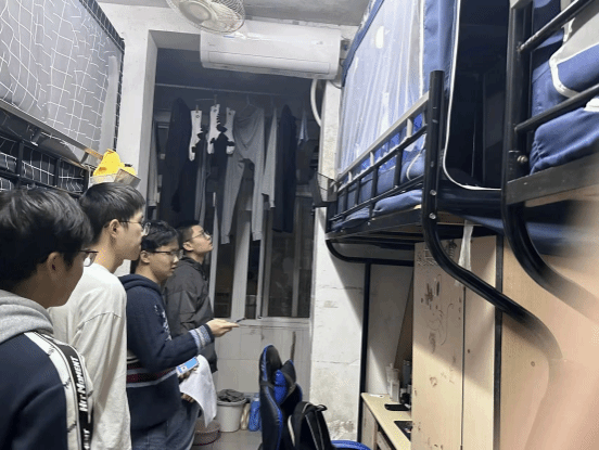 学院教师和学生骨干分为三组分别带队深入31栋男生宿舍,35栋女生宿舍和南区11栋女生宿舍进行排查。此次排查重点排查了学生宿舍楼栋消防安全通道、公共区域管理、随意楼道占用和相关设施的安全隐患,学生宿舍的用火用电和基础设施安全隐患,电器线路老化、裸露、私搭乱接电线、持有和使用违章电器等违规违纪行为,排查学生宿舍楼面粉刷层脱落、风扇悬挂稳固等隐患。