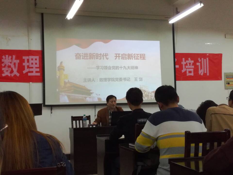 党课上,王剑围绕学习领会十九大精神,结合自身学习心得体会和工作实际,为学院全体学生党员、入党积极分子作了题为 “奋进新时代 开启新征程”的专题党课。