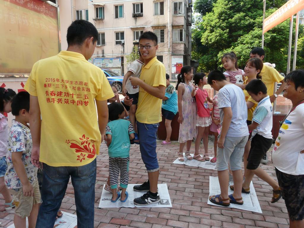 留守儿童的心理健康也是这次实践服务活动的重要主题。队员们与留守儿童进行了交流互动,鼓励孩子们自我介绍、表演节目,让孩子们自信勇敢的展现自己,大家都表现得非常积极。多样的户外心理小游戏,精彩的魔术表演和精美的文具礼物让孩子们脸上挂满了笑容,他们收获了礼物,更收获了实践队员们带去的爱。