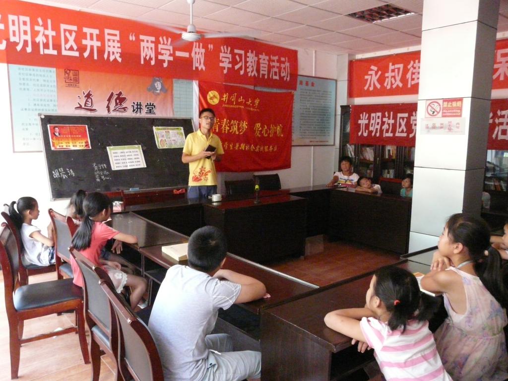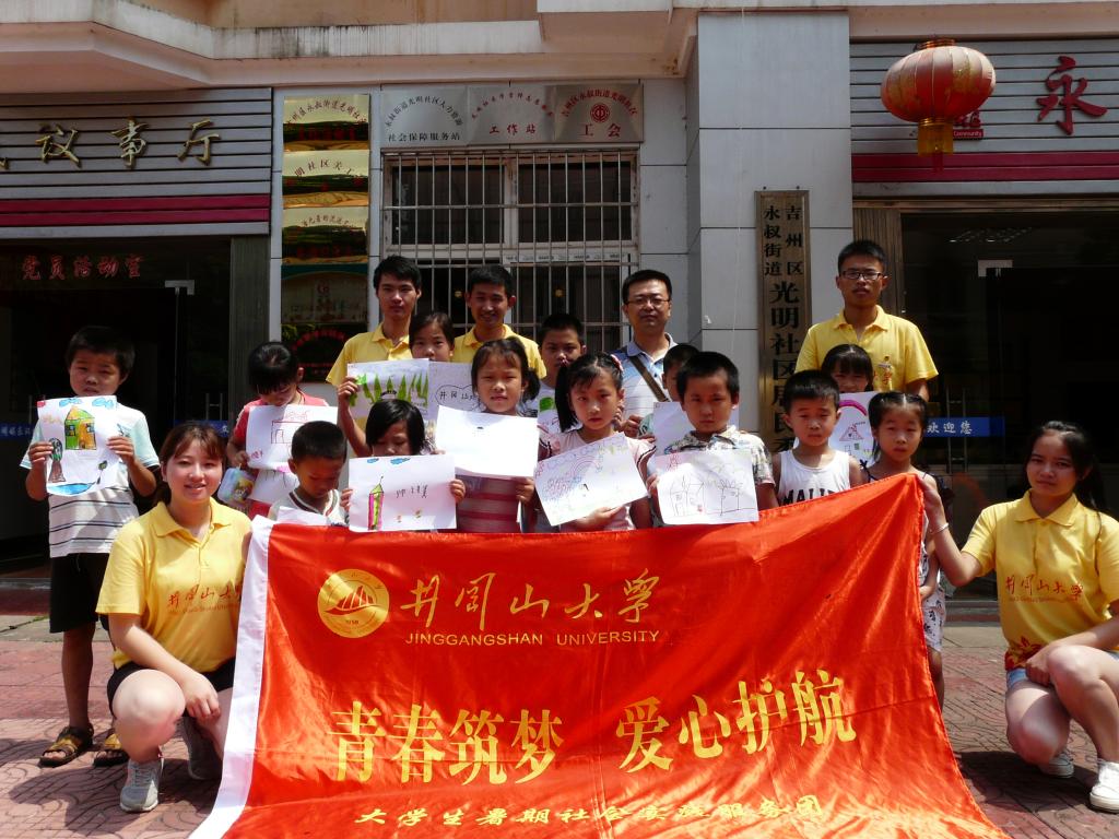 7月6日起,井冈山大学数理学院“青春筑梦,爱心护航”暑期教育关爱社会实践服务队赴吉安市吉州区永叔路街道光明社区开展了以“青春筑梦,爱心护航”为主题的关爱留守儿童社会实践服务活动。