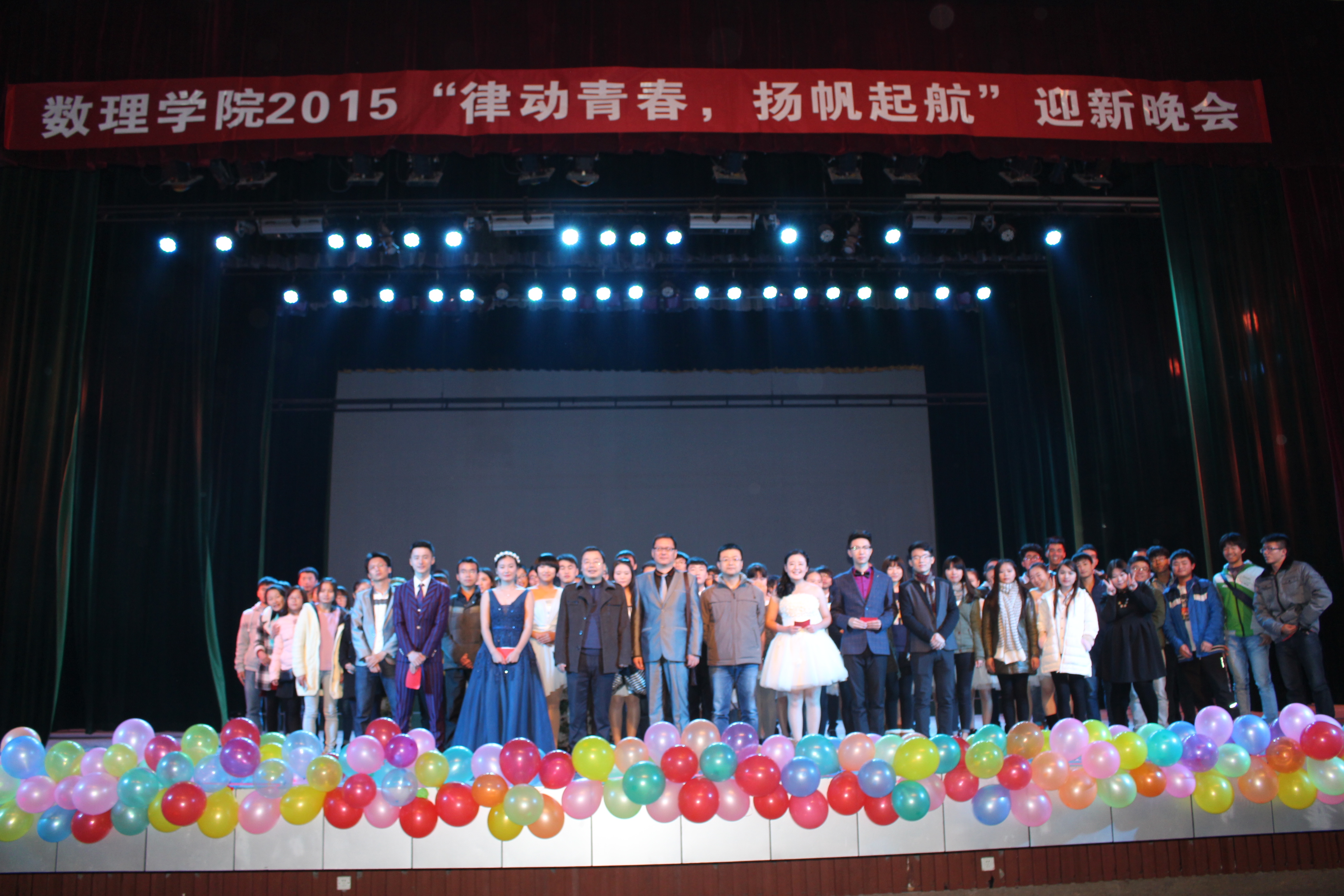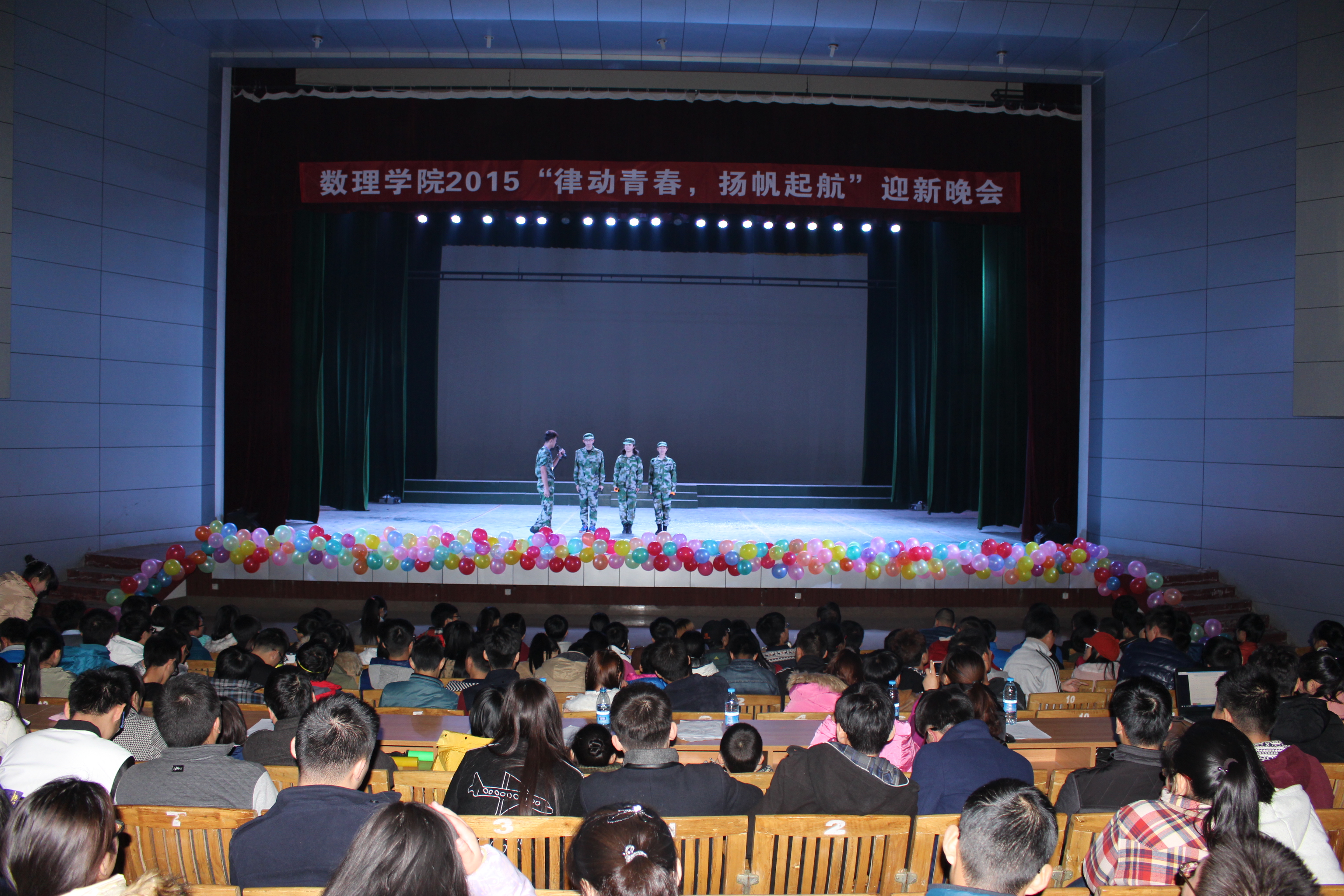 2015年11月28日晚,数理学院2015年“律动青春,扬帆起航”迎新晚会在学生会堂拉开帷幕。院领导与全院师生共同观看晚会。