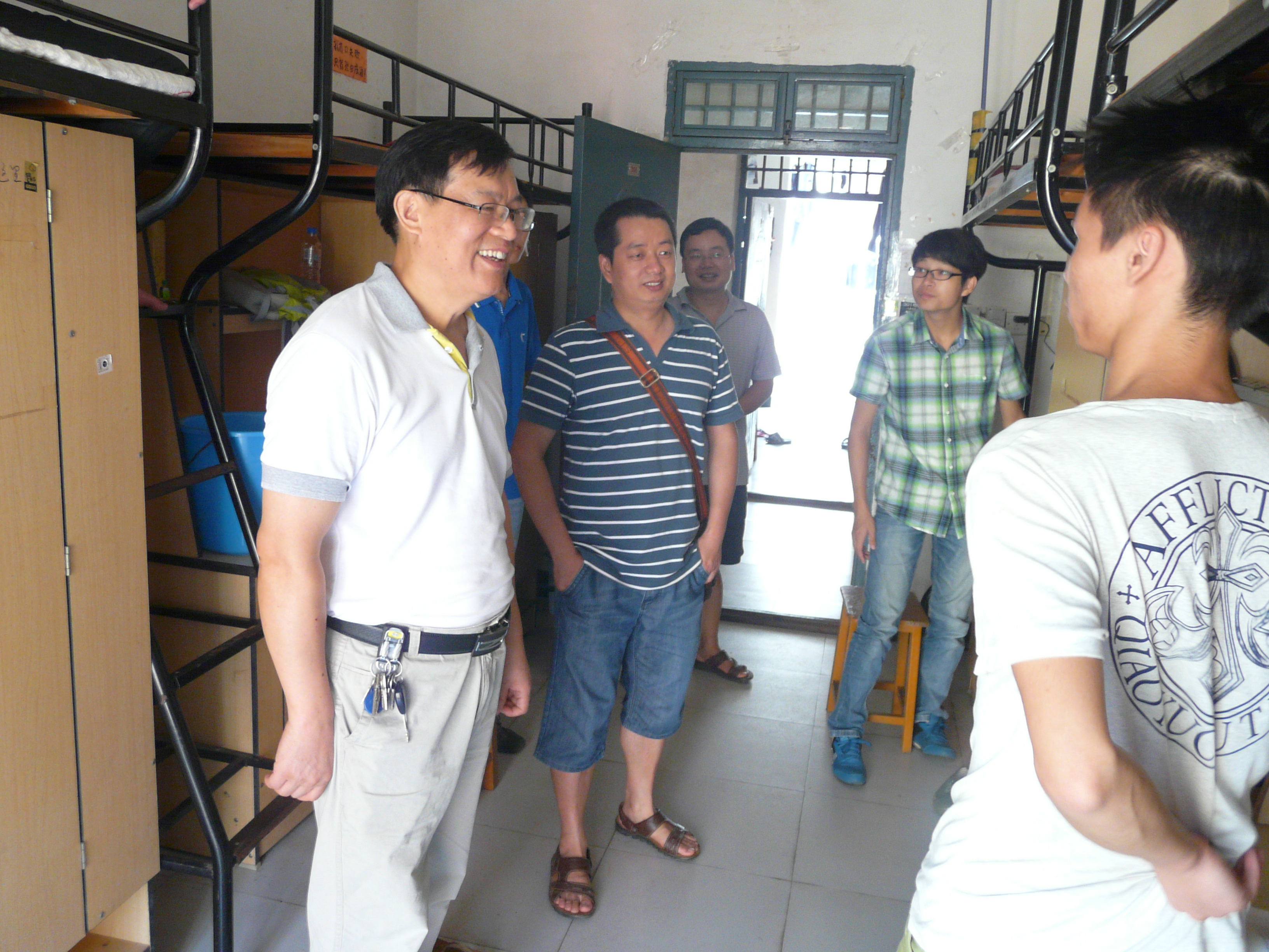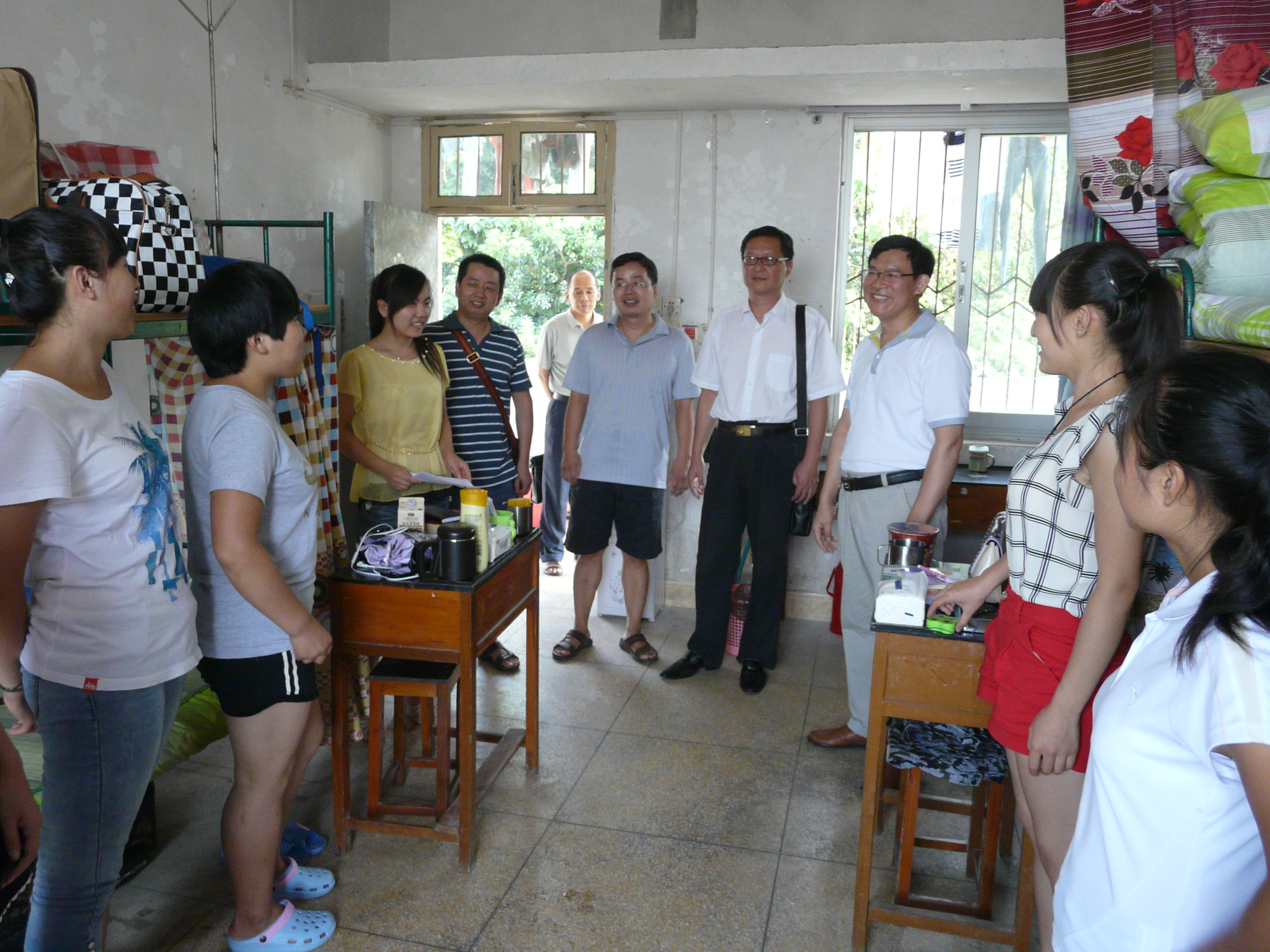 为更好的了解新生的入学状况,帮助新生更快了解和适应大学生活,2014年9月4日,学院党委书记钟风健、党委副书记宋耀东、副院长刘忠东、胡强林以及学院团委和新生班主任共同走访了学院2014级新生宿舍,与大一新生们零距离接触,为他们送去了一份来自学院的关心和温暖。