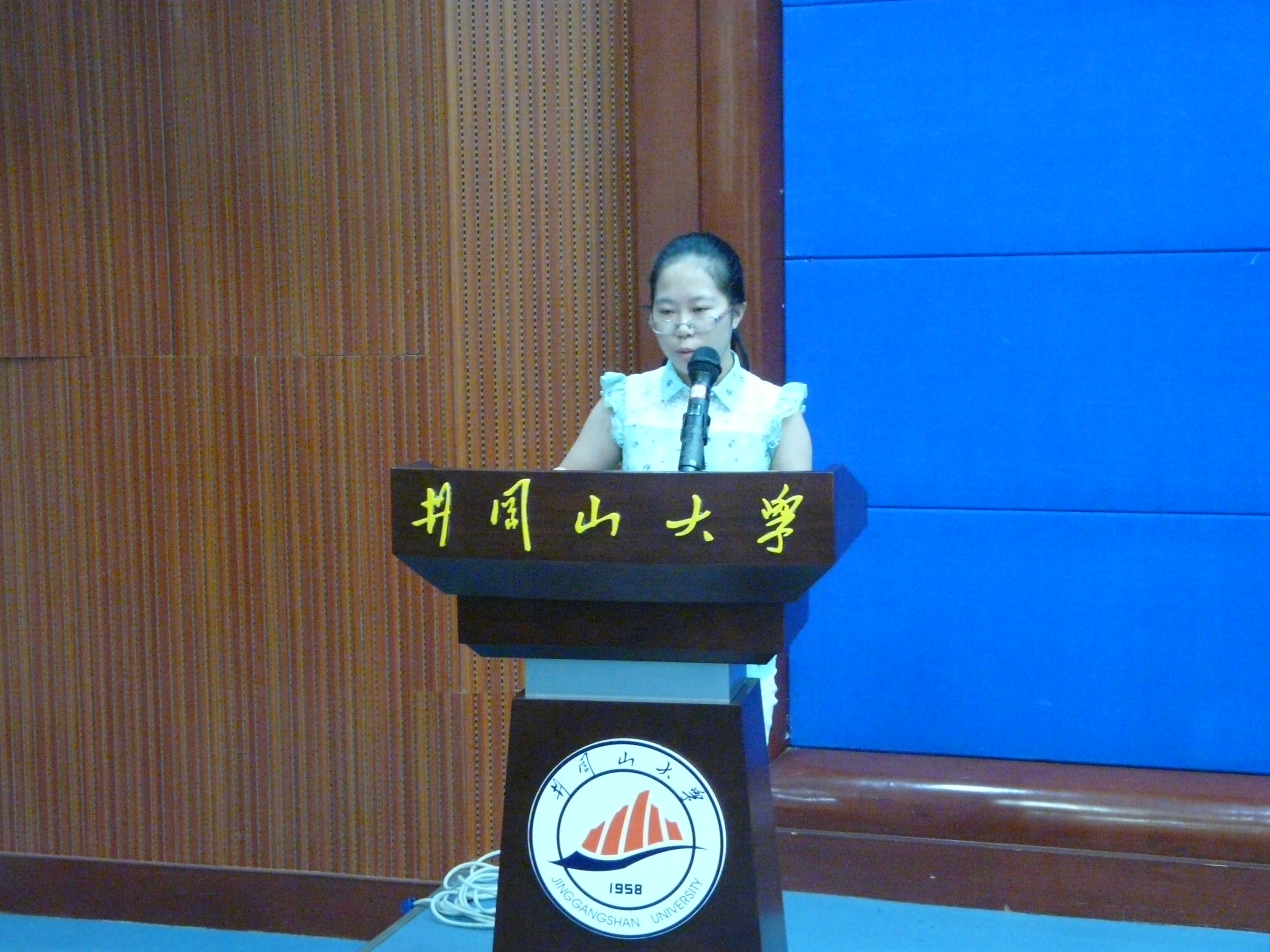 余晓光院长作院长报告,他向新生介绍了学院师资队伍、教学科研、人才培养和实验教学等情况,勉励新生珍惜到井冈山大学学习的美好时间,志存高远,努力实现自己的人生目标和崇高理想。