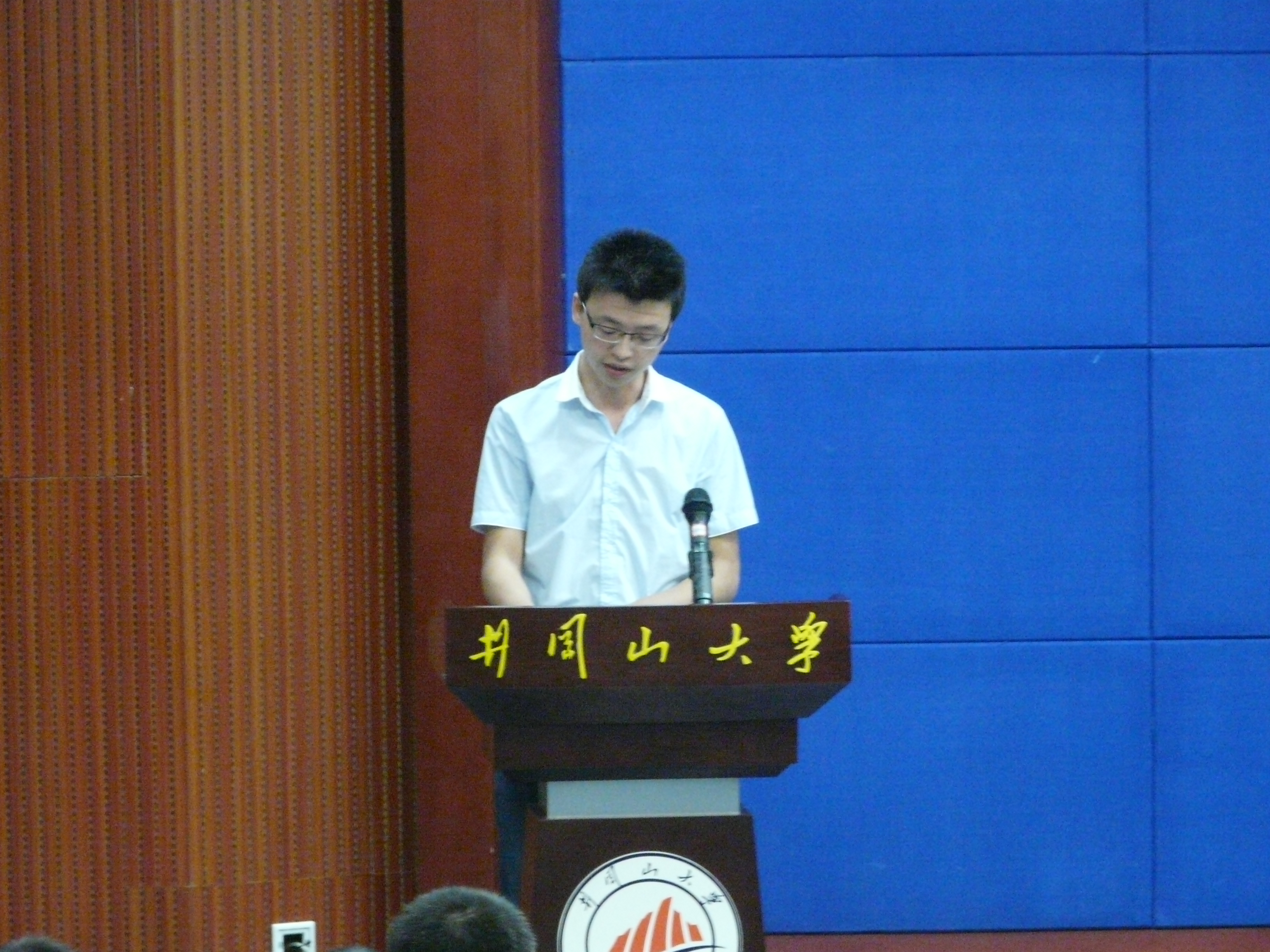 勾庆东博士作为学院教师代表首先发言。鼓励新生要热爱学习、热爱所学专业。在开学典礼上,全国数学建模比赛国家一等奖获得者,2011级数学本1班本宝伟同学代表老生发言,和新生共同分享了大学的学习、生活和工作中的体会和经验。今年我院首批招生的物理学一本专业学生赵佳蕾同学代表2014级新生发言,表达了对大学生活的期待和努力完成大学学习的拼劲与斗志。