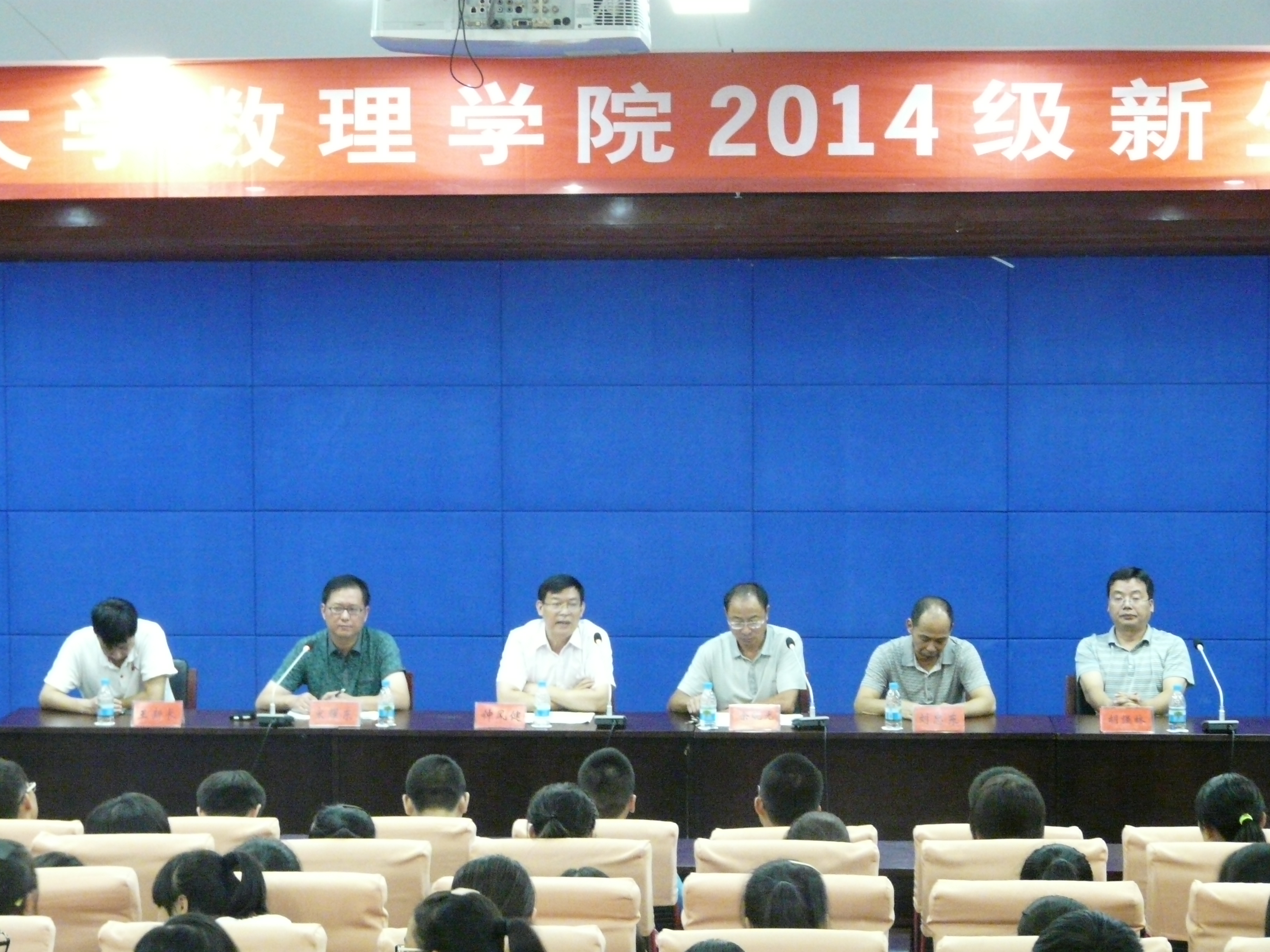 9月5日上午,数理学院2014级新生开学典礼在新学术交流中心学术报告厅隆重举行。学院党委书记钟风健、院长余晓光、副院长刘忠东、胡强林、王新长以及2014级师生220余人参加了开学典礼。开学典礼由学院党委副书记宋耀东主持。