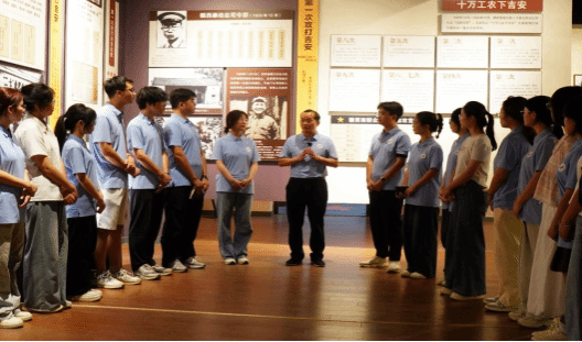7月3日,校党委常委、副校长敖四江来到吉安城革命历史陈列馆,为数理学院“闪闪红星,守望逐光”暑期社会实践团讲授了一堂生动的思政课。课程以探讨式学习方式,通过抛出问题引导学生深入思考吉安革命历史,感悟红色精神,激发青年学子的使命担当。校党委宣传部副部长胡正佩、校团委副书记夏婷婷、数理学院党委书记习军明及实践团成员参加。